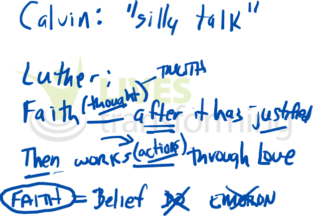 The Lives Transforming panel digs into the teachings of such great theological minds as Martin Luther and John Calvin, adding modern insights from Dallas Theological Seminary to highlight the truth that we are justified by faith and faith alone. That faith, after it has justified us, then works itself out in love toward others. As important as it is to those around us, love isn’t what justifies us. Rather, it’s the result of the fact that we’ve already been justified through faith.